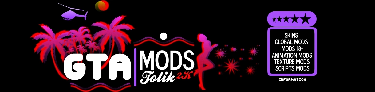 Tolik2K - Анатолий Мирошниченко. Я как и многие другие поклонник студии Rockstar games ! В свободное время создаю текстурные моды для GTA. Создатель двух паков скинов для GTA Vice City.